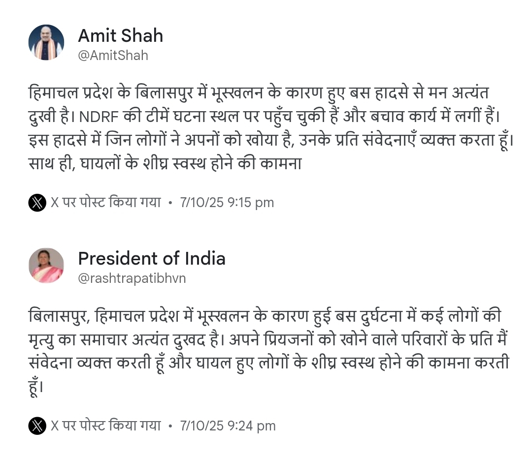 प्रधानमंत्री कार्यालय की ओर से किए गए एक्स पोस्ट में लिखा है, “हिमाचल प्रदेश के बिलासपुर में हुए हादसे में हुई जनहानि से दुखी हूं. इस मुश्किल घड़ी में हादसे से प्रभावित लोगों और उनके परिवारों के प्रति मेरी संवेदनाएं हैं.”